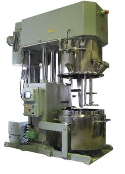 是一种无死点的动力混合、分散设备。通常具有一个或多个搅拌桨和分散盘,它们围绕釜体轴线公转的同时,也围绕自身轴线自转。通过搅拌桨和分散盘的行星运动,使物料受到剪切和捏合作用,实现混合。广泛应用于粘合剂、化工涂料、塑料、制药、食品等行业的固-固相、固-液相、液-液相物料的混合、反应、分散、溶解、均质、乳化等工艺过程。
