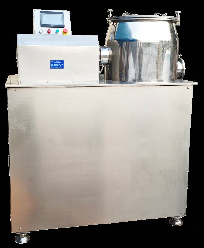 实验室高效湿法混合制粒机是应用了 PLC程序控制技术与变频控制技术于一体的机、电、气一体化设备。适用于药品﹑食品﹑化工等行业中对粉状松散物料进行混合、制粒,亦可用于干粉混合。