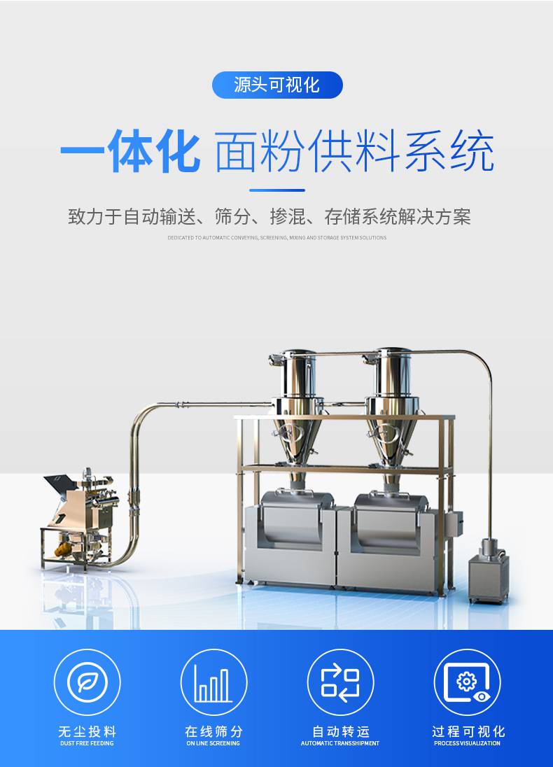 高服面粉气力输送 集中自动无尘供料系统可满足食品、医药企业自动化生产需求,依据配方自动计量配料、精准添加,稳定产品品质,有效提升企业市场竞争力。
