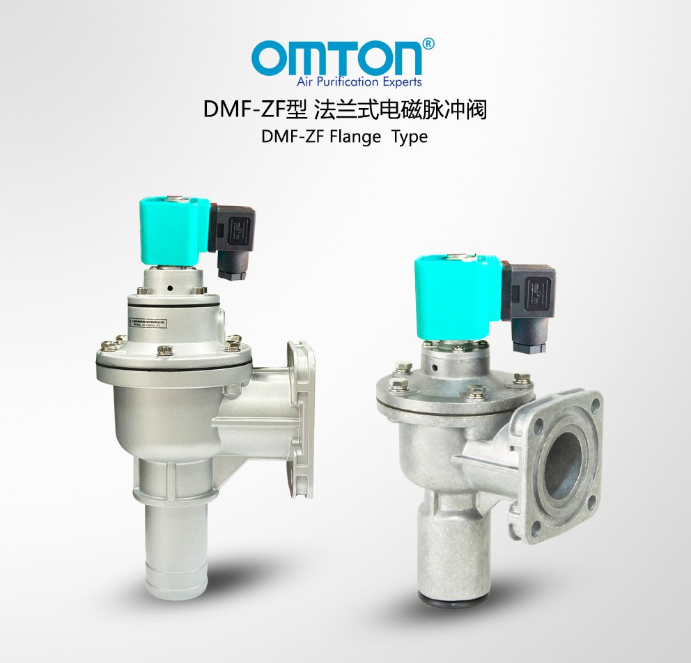 DMF-ZF型电磁脉冲阀为法兰阀,其进气口之间夹角为90°,其进口方便与储气筒连接。气流畅通,能提供符合要求的清灰气脉冲。