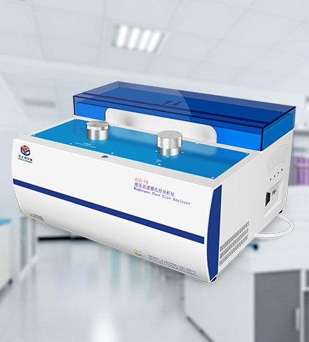 首先被打开的孔所对应的压力,为泡点压力,该压力所对应的孔径为**孔径; 在此过程中,实时记录压力和流量,得到压力-流量曲线;压力反应孔径大小的信息,流量反应某种孔径的孔的多少的信息;然后再测试出干膜的压力-流量曲线,可根据相应的公式计算得到该膜样品的**孔径、平均孔径、*小孔径以及孔径分布、透过率。