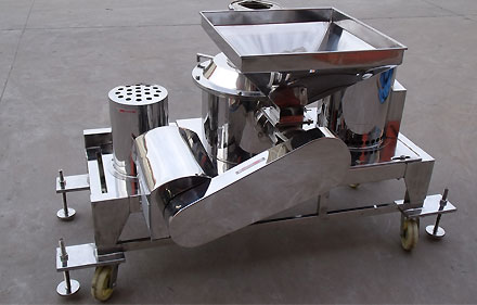 工作原理:物料由加料系统均匀的送入粉碎室受到高速旋转的粉碎盘的强烈冲击,同时受到离心力的作用,与粉碎齿圈发生碰撞,受到剪切、摩擦、碰撞等多种综合力的作用,使物料粉碎,被粉碎的物料随气流运动到分级区,通过变频调节的分级轮,对粗细物料进行分离,符合细度要求的产品随气流进入旋风收集器和除尘器收集,粗物料返回分级区二次粉碎。