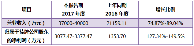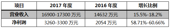 公司预计2017年全年实现营业收入1.69亿元至1.73亿元,同比增长15.5%至18.2%;实现净利润3260万元至3300万元,同比增长58.71%至60.66%。预计2017年业绩同比大幅增加。