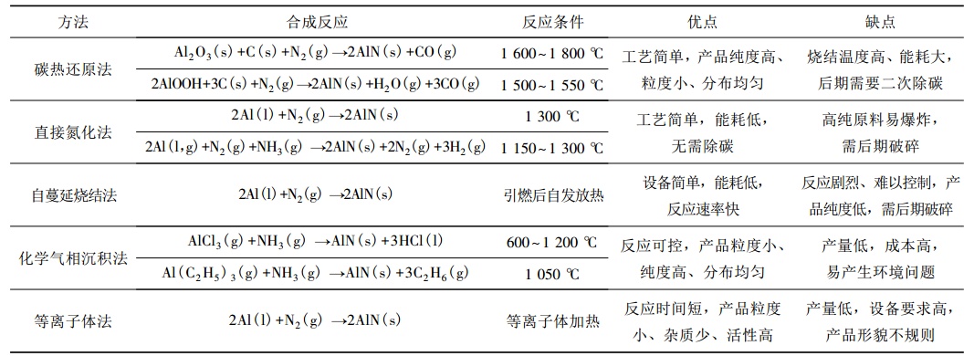 来源:蒋周青等.氮化铝粉体制备技术的研究进展