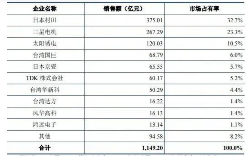 据相关资料显示,全球MLCC生产企业不到20家,其中村田和三星机电占据全球一半以上的市场份额,在产能和技术上的优势十分突出,具有绝对的市场主导能力。