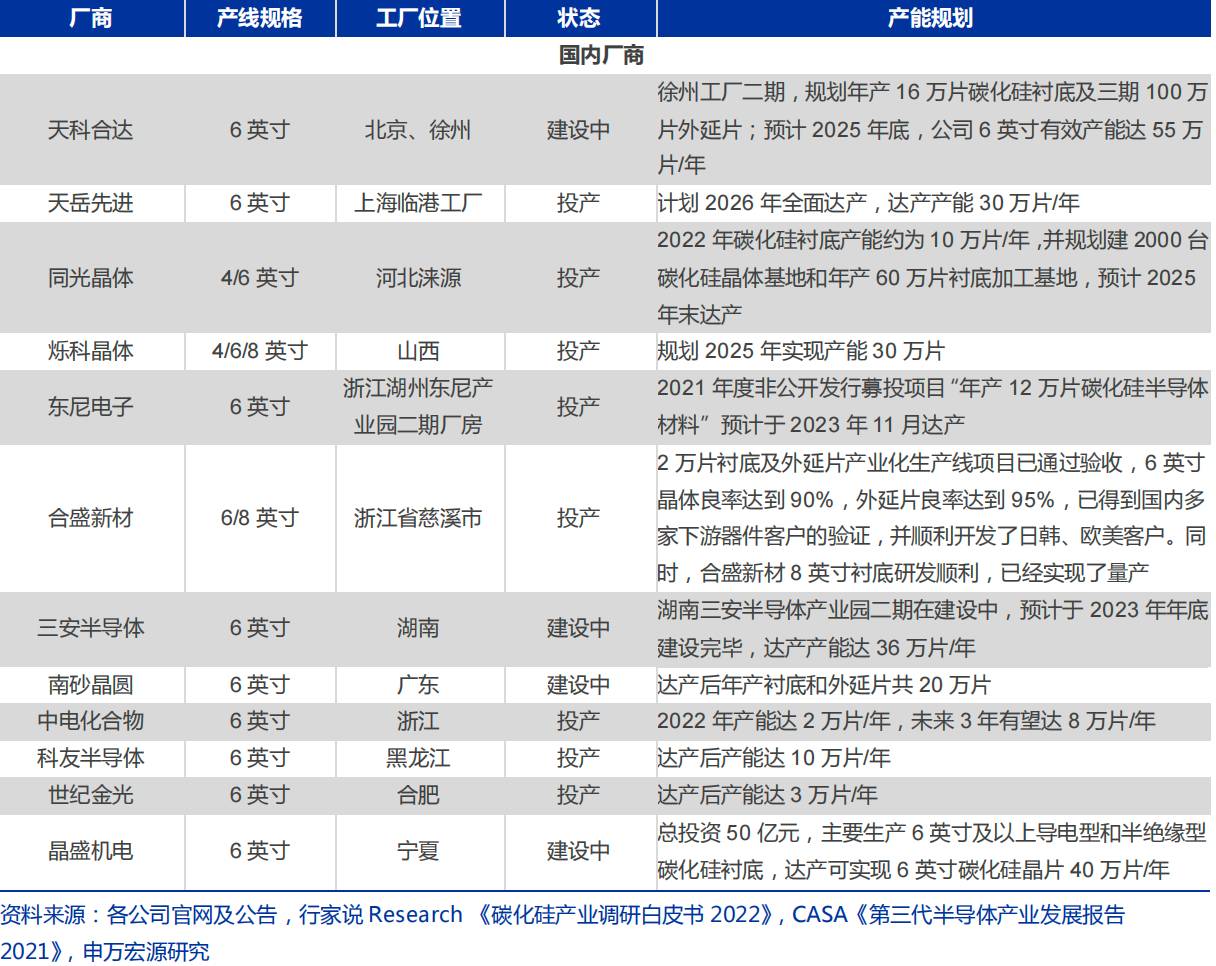 国内外碳化硅衬底厂商产能规划,来源:申万宏源