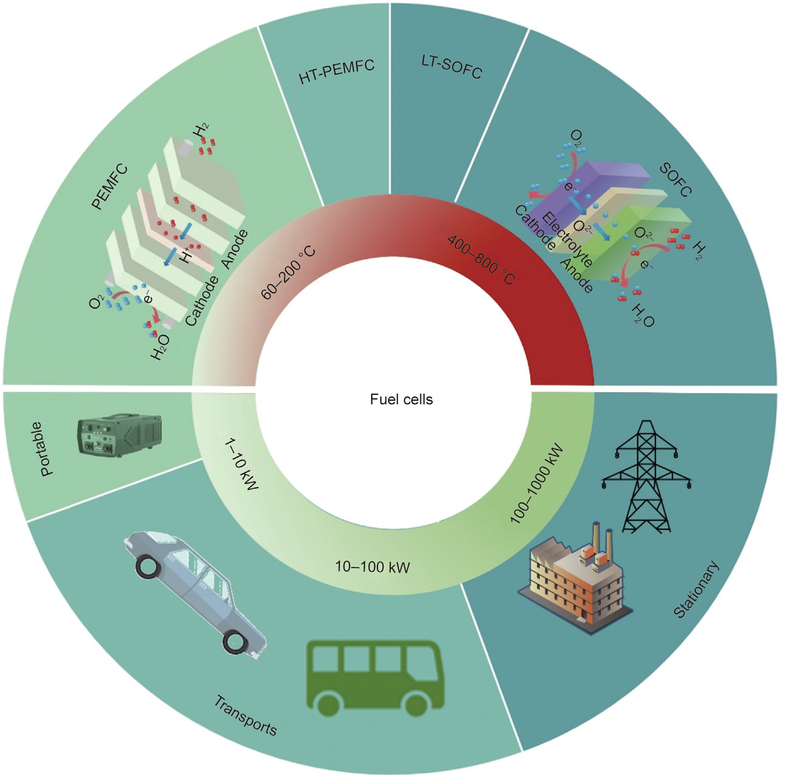 中国粉体网讯 SOFC可以使用氢作为燃料,并且不需要高纯度的燃料。特别地,它们可以直接使用各种含碳燃料(例如,天然气、生物质气、汽油、柴油、乙醇等)与现有能源供应系统兼容。SOFC也被称为陶瓷燃料电池,具有全固态陶瓷结构,寿命高达100 000 h。它们的模块化设计易于安装,在不同额定功率下具有高电气效率,并轻松提高电网运行的灵活性和安全性。固体氧化物燃料电池的缺点包括其高温操作-这影响了材料的选择范围和由于材料降解而导致的寿命损失-以及其缓慢的启动速度。SOFC最常见的应用领域是固定发电,包括小型家用热电联产(CHP)、数据中心备用电站和工业固定电站。在这些应用中,大规模分布式发电和近零CO2排放的集成气化燃料电池(IGFC)系统将成为未来的主要研究方向。