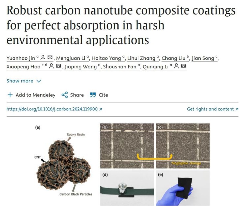 清华大学纳米中心研究团队成功开发了一种基于碳纳米管的超强吸收率复合涂层,该涂层技术克服了以往吸收体在极端环境下性能衰减和易破损等问题,实现了在高低温、水流冲击、反复机械划擦以及长期户外暴露等恶劣条件下仍能保持超过99.9%的吸收效率,为能源收集、隐身技术、太空探索等高技术领域带来了新的解决方案。