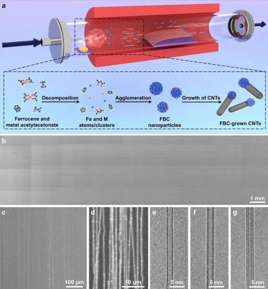 利用浮游双金属催化剂实现超长碳纳米管水平阵列的高产率和高均匀性制备