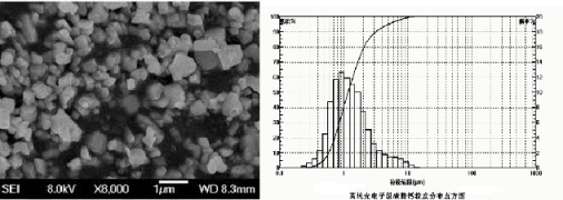 电子级高纯碳酸钙SEM图像和粒径分布直方图