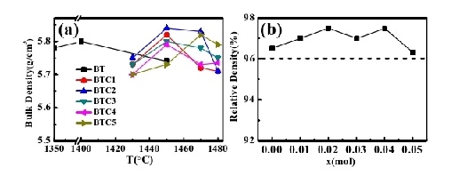 碳酸钙掺杂对BaTiO3材料致密性的影响