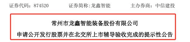 中国粉体网讯 6月19日,北交所受理了常州市龙鑫智能装备股份有限公司(证券代码:874520,证券简称:龙鑫智能)的IPO申请。