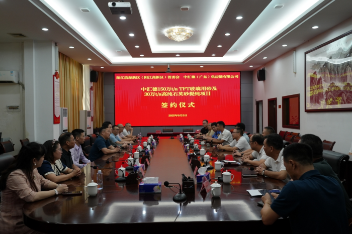 中国粉体网讯 近日,阳江滨海新区(阳江高新区)管委会与中汇德(广东)供应链有限公司举行150万t/aTFT玻璃用砂及30万t/a高纯石英砂提纯项目签约仪式。