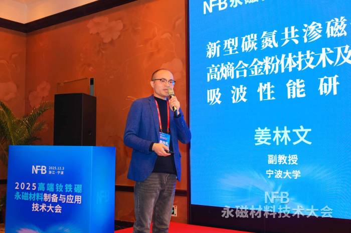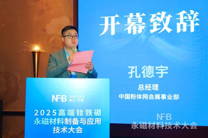 中国粉体网讯 在科技产业蓬勃发展的浪潮中,钕铁硼永磁材料凭借其卓越性能,成为众多关键领域不可或缺的核心材料。随着人形机器人等新兴领域的崛起,新能源汽车市场的爆发式增长,风力发电装机规模的持续扩张,未来数年其市场规模将保持强劲增长态势。在此背景下,由中国粉体网主办的“2025高端钕铁硼永磁材料制备与应用技术大会”于2025年12月3日在浙江宁波隆重召开。本届大会云集钕铁硼磁材行业专家、学者、技术人员、企业代表等两百余人,深入交流了钕铁硼材料技术、行业发展现状及趋势。