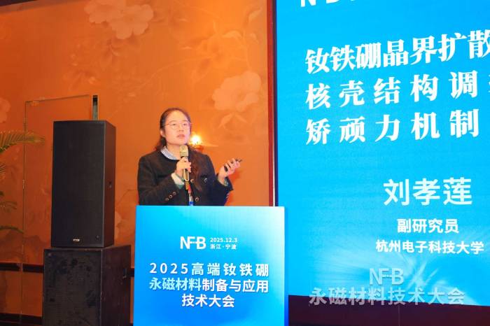 杭州电子科技大学刘孝莲副研究员作《钕铁硼晶界扩散磁体核壳结构调控和矫顽力机制研究》报告
