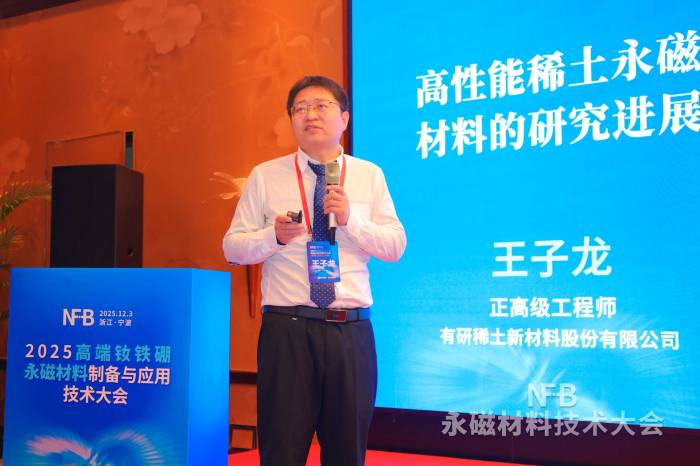 有研稀土新材料股份有限公司高级技术主管王子龙作《高性能稀土永磁材料的研究进展》报告