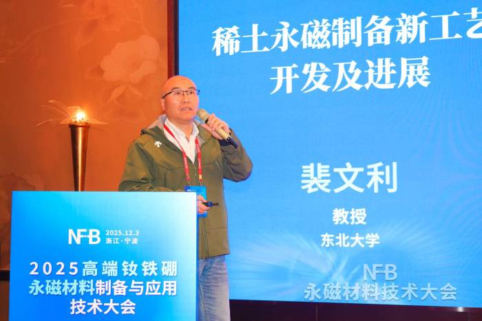 东北大学裴文利教授作《稀土永磁制备新工艺开发及进展》报告
