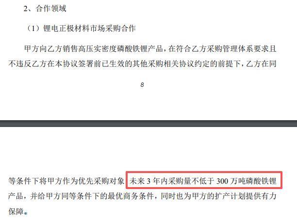 本次合作的核心亮点之一,是一份巨量的长期采购协议。根据《战略合作协议》,宁德时代承诺在未来三年内向富临精工采购不低于300万吨的磷酸铁锂正极材料。这一订单为富临精工核心业务的长期增长提供了坚实保障。