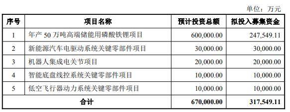 其中,年产50万吨高端储能用磷酸铁锂项目为子公司江西升华拟在内蒙古鄂尔多斯市伊金霍洛旗蒙苏经济开发区投建年产50万吨高端储能用磷酸铁锂项目,预计总投资额60亿元,拟使用募集资金24.75亿元。该项目分两期建设,两期同步实施,规划产能均为25万吨新型磷酸铁锂,建设周期预计为12个月。项目建成后,将大幅提升公司磷酸铁锂产能,有利于缓解公司现有产能不足的矛盾,满足不断增长的下游需求。