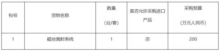 项目名称:中国科学院物理研究所磁控溅射系统采购项目