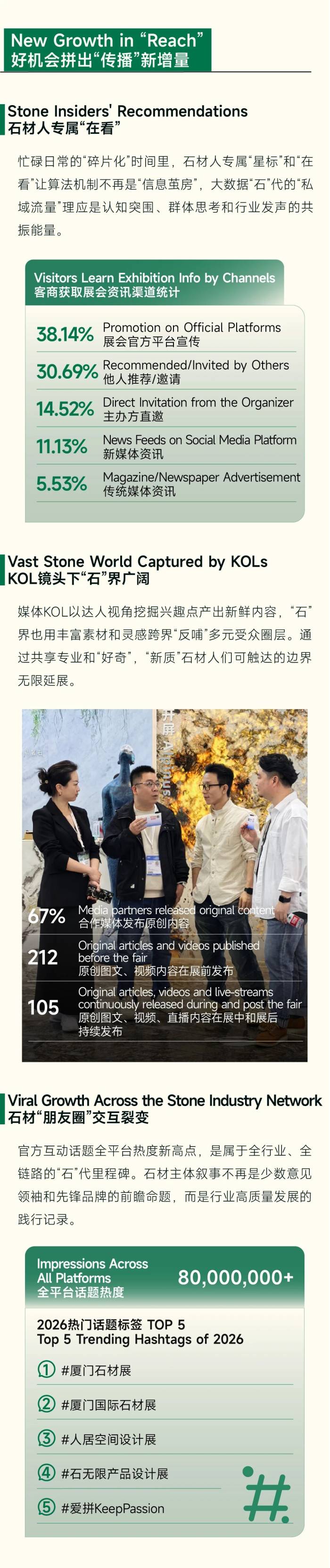透过展会大数据,我们看到石界生态的又一次协同升级。“资源、科技、设计”三大核心内容经由“视觉呈现、沟通触达、反馈转化”三个交互层次递进融合,共享能量蓬勃生长。