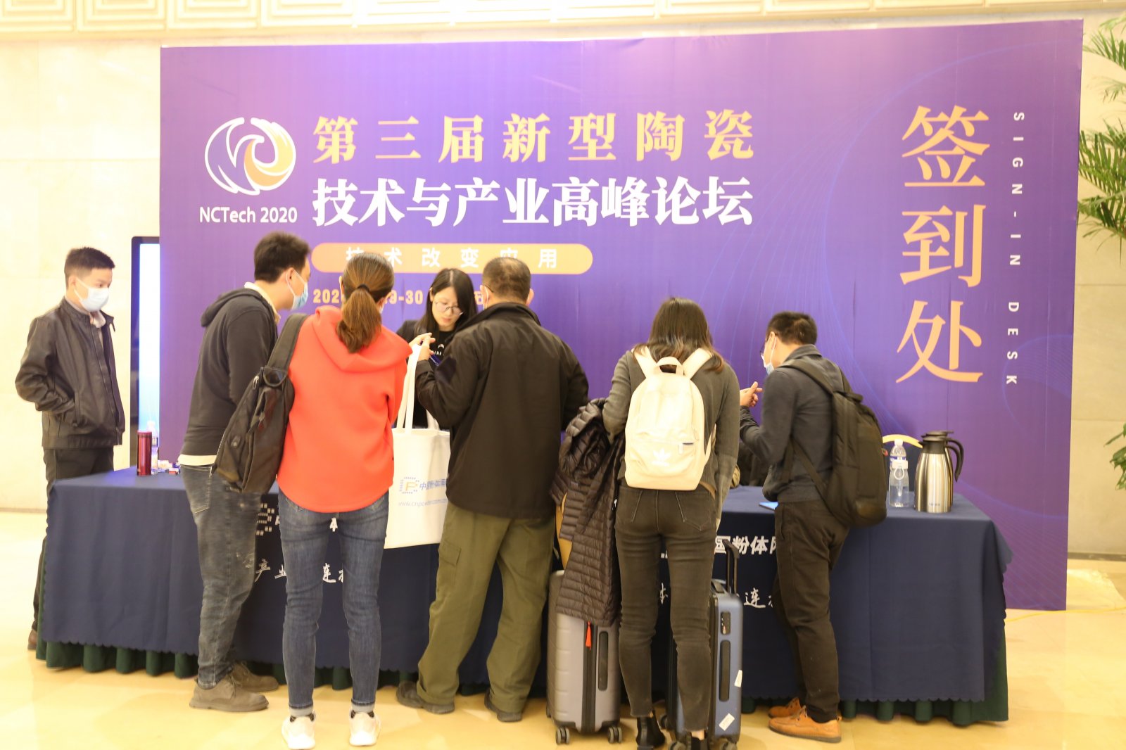 10月28日,在中国粉体网主办的“2020第三届新型陶瓷技术与产业高峰论坛”签到现场,签到人员络绎不绝。