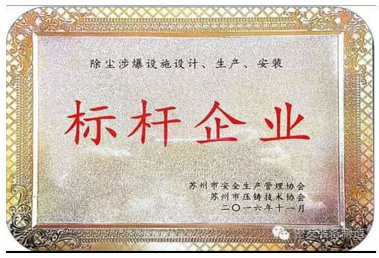 近日,江苏密友粉体新装备制造有限公司荣获了苏州市除尘涉爆设施设计、生产、安装标杆企业的荣誉称号并收到了苏州市安全生产管理协会颁发的荣誉证书及牌匾。