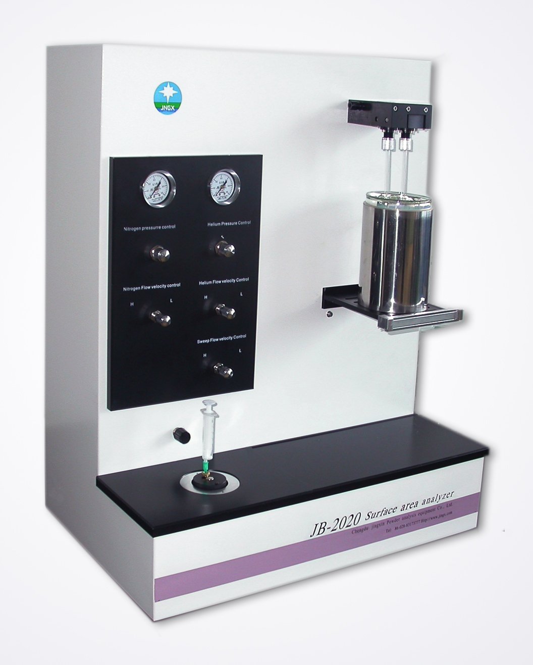 JB-2020型比表面积是成都精新自主研发和生产的一款新型比表面积测试仪,拥有独立知识产权和两项专利证书:ZL02222754.7,ZL200520034893.8。根据国家标准及气相色谱、低温动态氮吸附原理,采用高灵敏传感器,双气源动态测试法测试物体比表面积。测量范围0.0005㎡/g~无上限,可以连续不关机测试。软件提供单点测试、多点(BET)、对比测试3种测试方法,满足不同测试需求,为各种物质的科研和生产提供真实有效的检测数据。