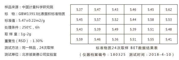 Kubo-1200超高速比表面积分析仪稳定性检测,通过对单一样品的重复测试(重复取样24次),根据标准偏差及平均偏差值来判定仪器稳定性,Kubo-1200可达到<1.5%的高度稳定性。Kubo-1200分析精度检测通过测试有认可度的“标准物质”来确定仪器的检测精度,并且也可通过中国计量院进行“计量认证”,以证自持检测仪器的测试数据可靠性。
