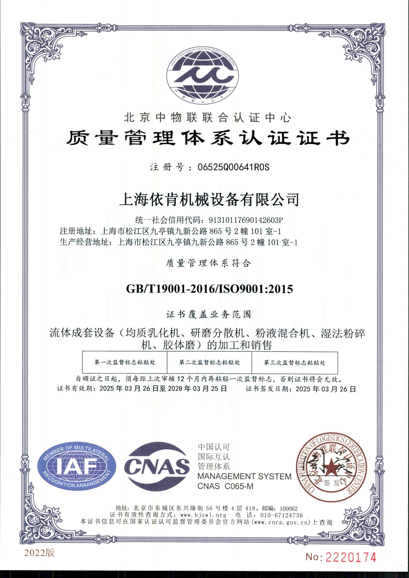 质量管理体系认证证书中文