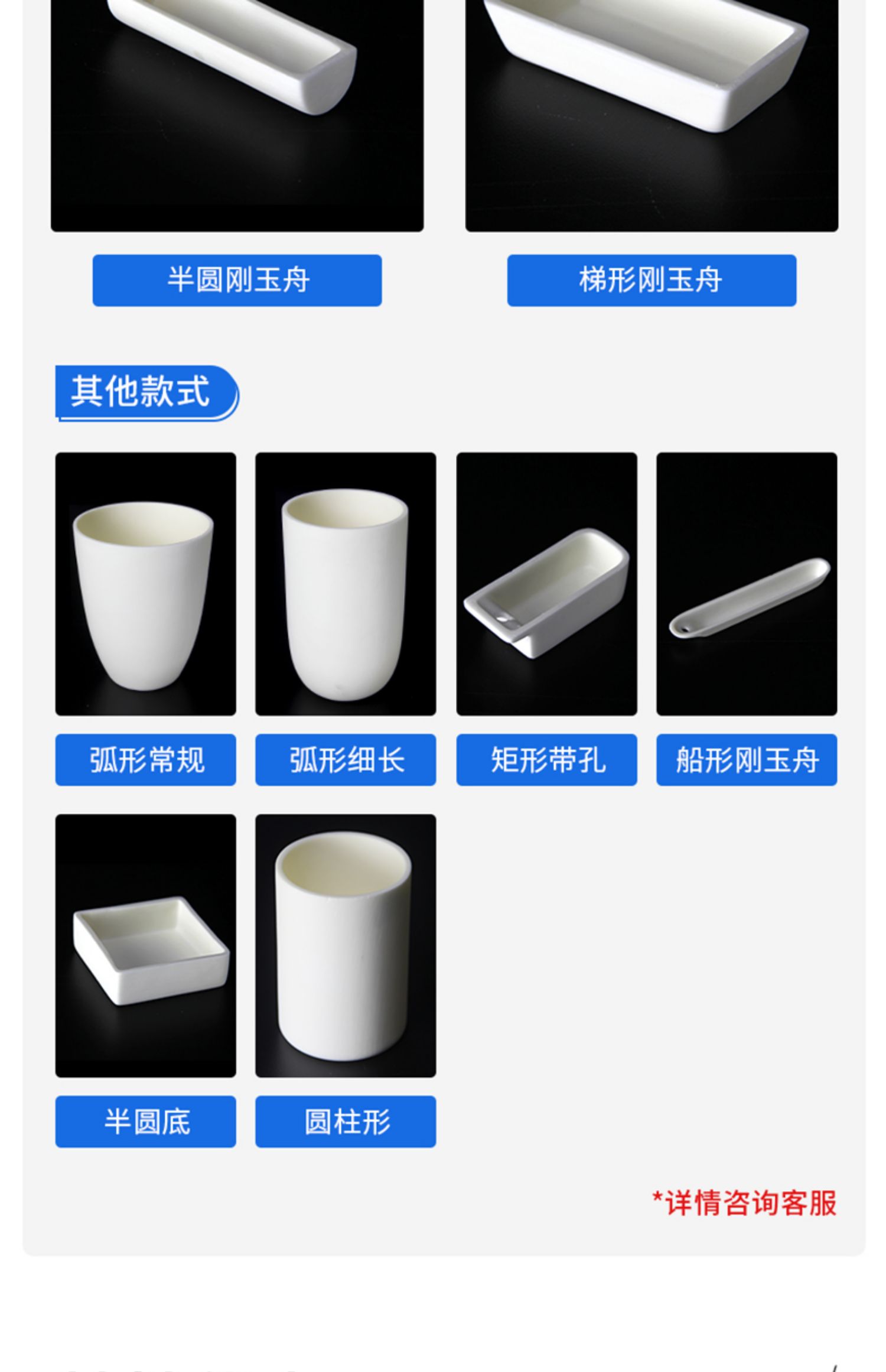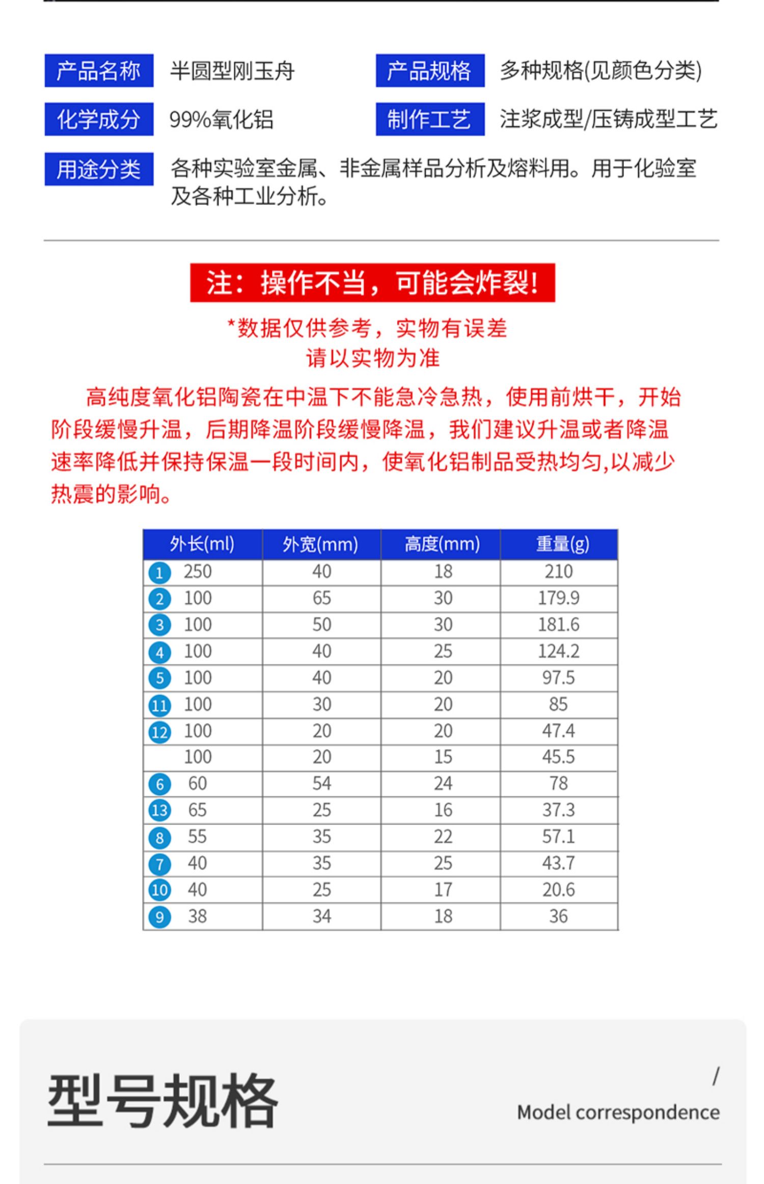 有半圆底刚玉舟坩埚的详细技术参数吗?