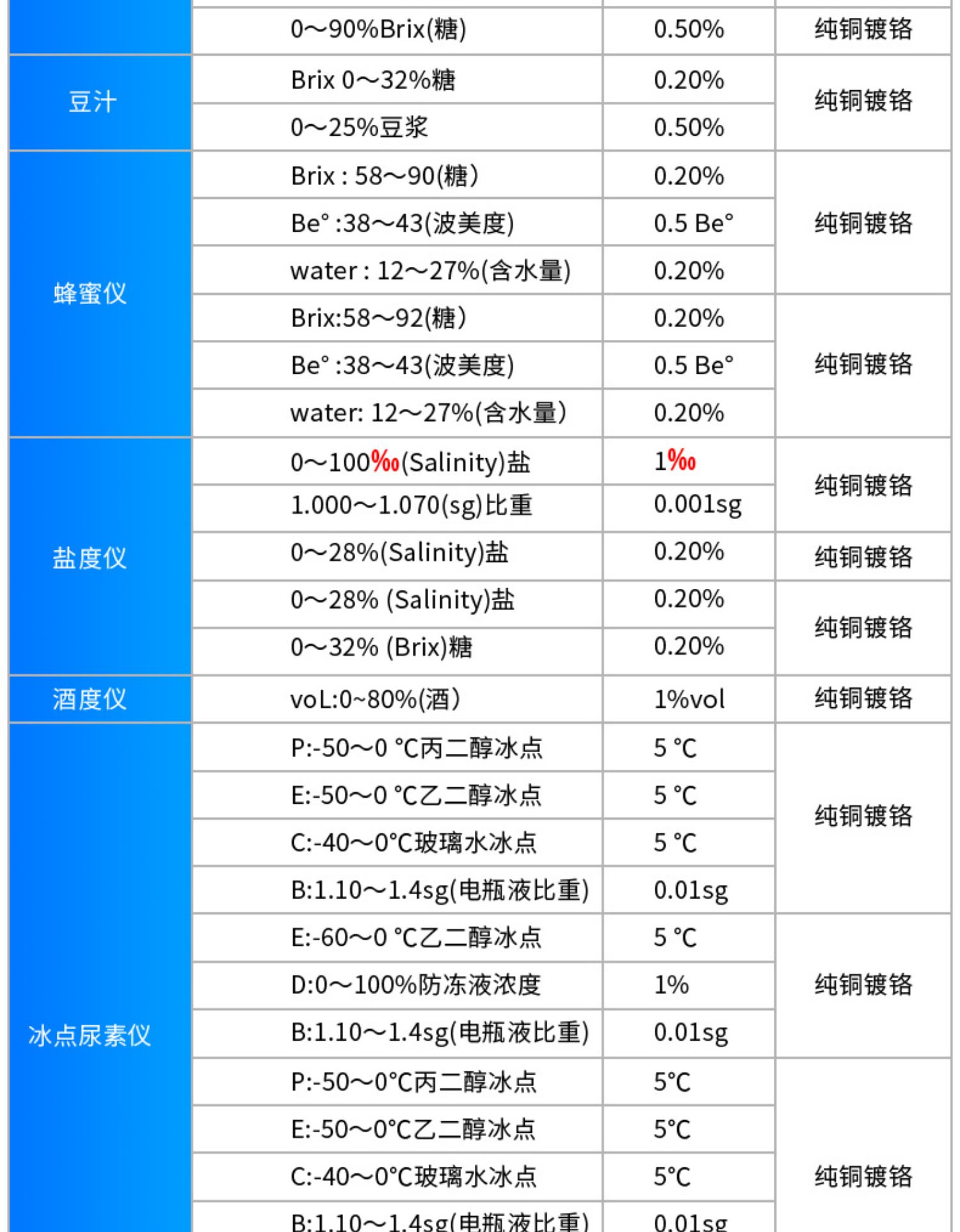 | 乙二醇浓度计 | 米淇 | JHGX-404ATC | 国产 | 1万元以下 |