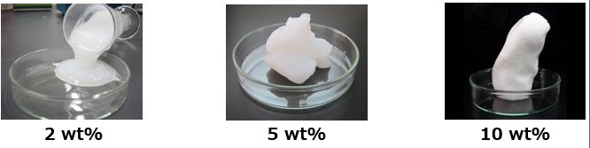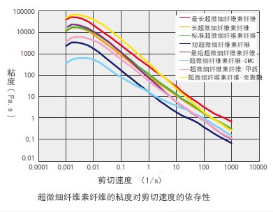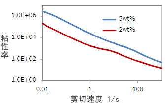 因此,可以制造“在静置时具有高粘度,而在施加力时粘度降低的流体”。此外,剪切速率的依赖性因原料类型和纤维长度的不同而不同,因此您可以选择适合自己目的的一种。