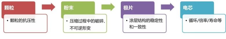 一、测试目的该项目用于对锂电池、钠电池等体系不同正负极材料单个颗粒的压缩测试,评估材料颗粒层级的耐压性、压溃力。一般有以下几个方面的研究和应用(如图1):1)颗粒的抗压性与粉末压缩过程中颗粒破碎、不可逆形变的关联2)颗粒的抗压性与极片压实情况下颗粒压溃、涂层稳定性的关联3)颗粒的抗压性与电芯循环稳定