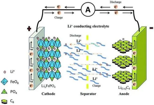 前 言锂离子电池是一种摇椅式二次电池,它主要依靠锂离子在正极和负极之间的移动来工作(图1)。在充电过程中,锂离子从正极中脱出,经过电解液嵌入负极。此时,电子通过外电路从正极流向负极,形成电流。放电过程中则相反,锂离子从负极中脱出,经过电解液返回正极,同时电子通过外电路从负极流向正极,产生电流对外供