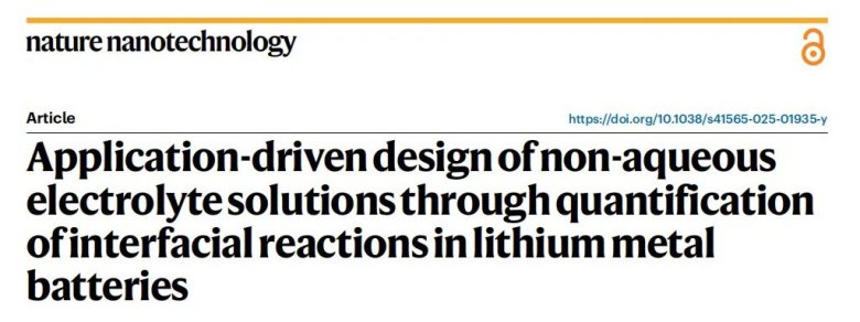 近日,宁德时代21C创新实验室欧阳楚英、王瀚森团队独立完成的锂金属电池研究成果发表于国际顶级期刊《Nature Nanotechnology》,题为《Application-driven design of non-aqueous electrolyte solutions through quan