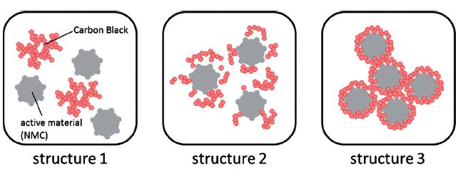 锂电正负极浆料是由活性物质、导电剂、粘结剂分散于溶剂中形成的固液两相混合体系。理想的电极浆料应该满足以下要求:(1)活性物质和导电剂颗粒团聚体尽可能分散;(2)打开导电剂长链,进一步分散链状导电剂;(3)形成最合适的活性物质、导电剂和粘结剂彼此之间的排布方式;(4)维持浆料最优悬浮结构和成分稳定性,