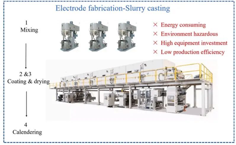 干法电极工艺知多少?锂离子电池以其高能量密度、高功率、长循环寿命等优势在新能源动力和储能设备中占据着主导地位。随着商用的锂离子电池的发展,行业对其制造成本和性能上的要求日益严苛,锂离子电池的成本和性能在很大程度上取决于电极的制造工艺。创新、可靠、低成本的电极制造技术对于促进锂电池的大面积应用至关重要