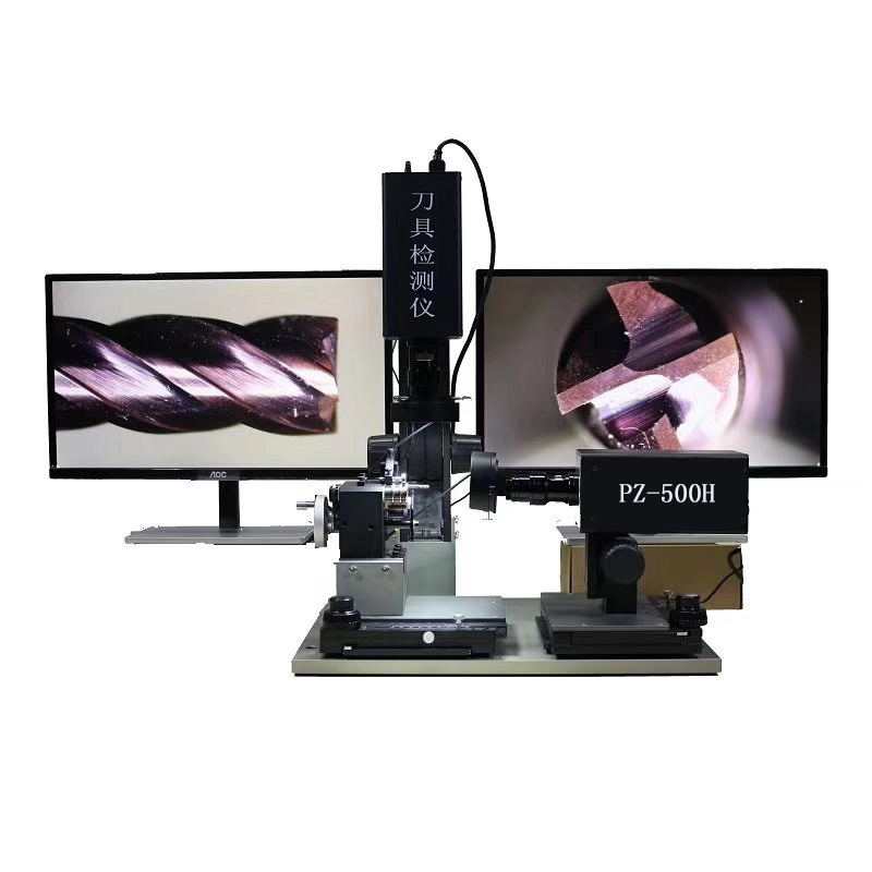刀具检测仪PZ-500H采用双调节系统,能有效的随意调节刀具的正面和侧面。成像系统采用高清晰度的SONY传感器工业级别相机,PZ-500H具有拍照、测量功能,具备刃宽、夹角、圆形、圆间距等测量功能,以及自动测量直径功能,高倍高清镜头采用200万解析度双远心镜头,采用22英寸的高清显示屏,多方面的优质部件,构成高清的刀具检测专用检测仪,能够有效的满足日常检测要求,传统检测仪器大多采用国外,具有价格昂贵,货期长,等劣势,此款检测仪有效的为刀具用户解决检测方案,提高刀具品质,降低设备成本,起到了不可替代的作用。