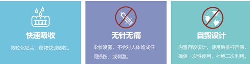 鼻腔给药雾化装置是一体化设计无污染风险;透气阻菌包装,微粒化喷头,药物快速吸收,无针无痛:伞状喷雾,不会对人体造成任何损伤、或刺激。精准给药,病人可自行用药;不需要无菌技术、静脉导管或其他侵入式装置;提高患者的依从性;简单易用、安全和方便;。