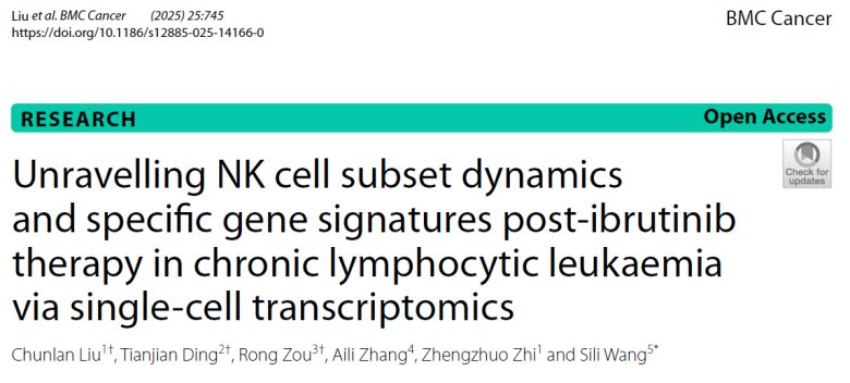 ​2025年4月,厦门大学附属第一医院等机构的研究人员在BMC Cancer上发表文章《Unravelling NK cell subset dynamics and specific gene signatures post-ibrutinib therapy in chronic lymphocy