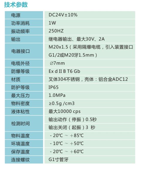 它运用音叉的“共振”原理,在压电元件的驱动下产生振动,只有探杆周围全部被物料包围时,振动幅度才急剧减少,从而产生开关动作。