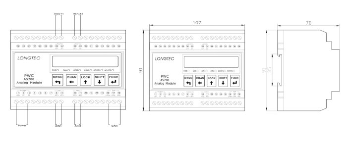 型号AS700-2AI2AO:2路模拟输入、2路模拟输出