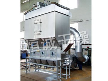 洁净的热风经阀板分配进入床体内,从加料器进入的湿物料被热风形成沸腾状态。由于热风与物料广泛接触,增强了传热传质的过程,因此在较短时间内就可干燥。如用连续型,物料从床体的一头进入,经过几十秒至几分钟沸腾干燥,自动从床体另一头流出。本设备一般进行负压操作。