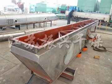 物料自进料进口进入机内,在振动力作用下,物料沿水平面流化床抛掷,向前连续运动,热风向上穿过流化床同湿物料换热后,湿空气经旋风分离器除尘后由排风1:3排出.干燥物料由排料进口排出。