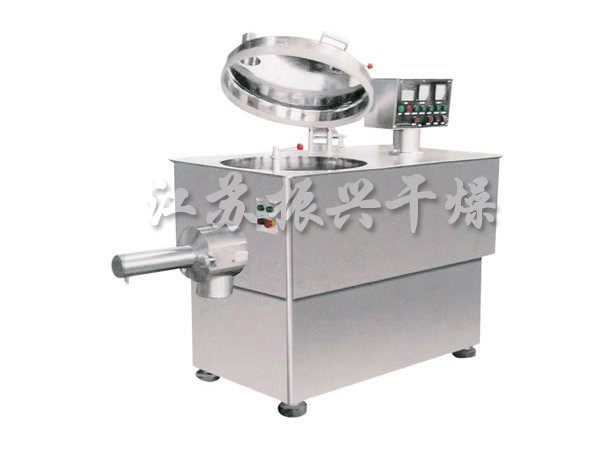 粉体物料与粘合剂在圆筒形容器中由底部混合浆充分混合成湿润软材,然后由侧置的高速粉碎桨切割成均匀的湿颗粒。