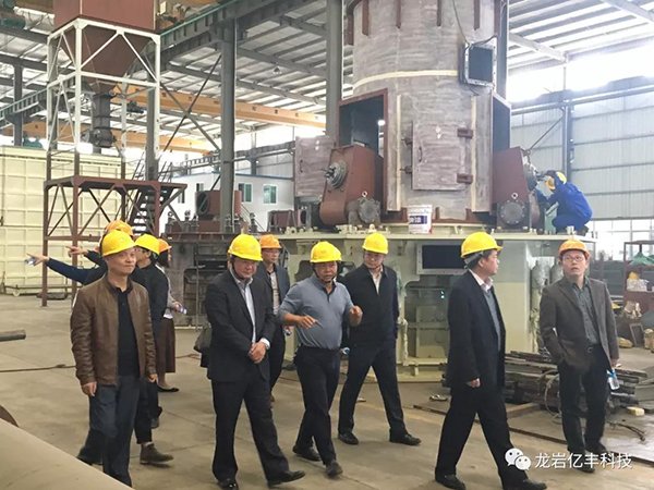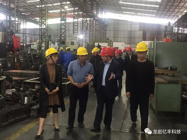 杨副市长一行参观了我司的冷作车间、机加车间、装配车间和铸造车间,详细听取了连钦明董事长对我司产品的工艺要求和生产流程的介绍。期间谈到我司研发的立磨产品,能达到国内领先水平,并得到重多大型国企的高度认可和持续购买,杨副市长表现出极大的兴趣,并希望能通过引进此类高端的产品,推动贺州的产业进一步升级。杨副市长还对亿丰产品严格的加工标准和精确到零件的可追溯体系表示赞许,并表示希望考察团一行把这样的高标准体系带给贺州的企业。