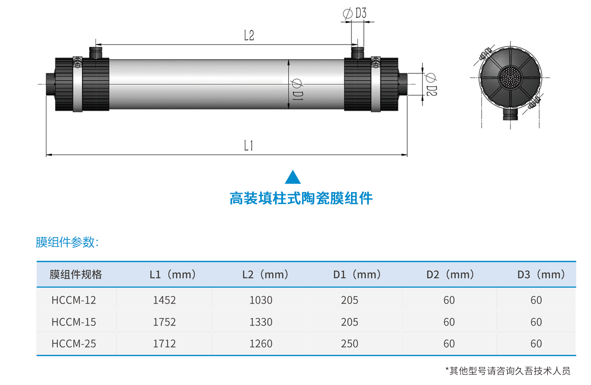 有高装填柱式陶瓷膜的详细技术参数吗?