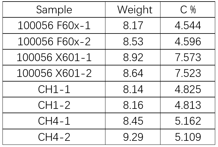 经测定FlashSmart 有机元素分析仪有充分能力胜任对于电池类样品的测定。测定结果重复良好,数据可靠。其中的磷酸盐及各类金属对测定完全无干扰,可有效地完成复杂样品的分析检测。总之,FlashSmart 检测范围不仅仅局限于有机物,也可完成其他复杂样品的测定。