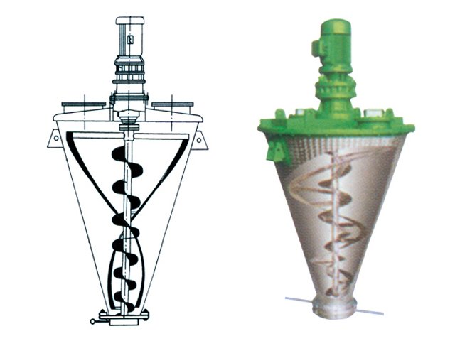 在双层螺旋带的对流运动下,该设备里的的物料形成低动态,高效的混合环境。